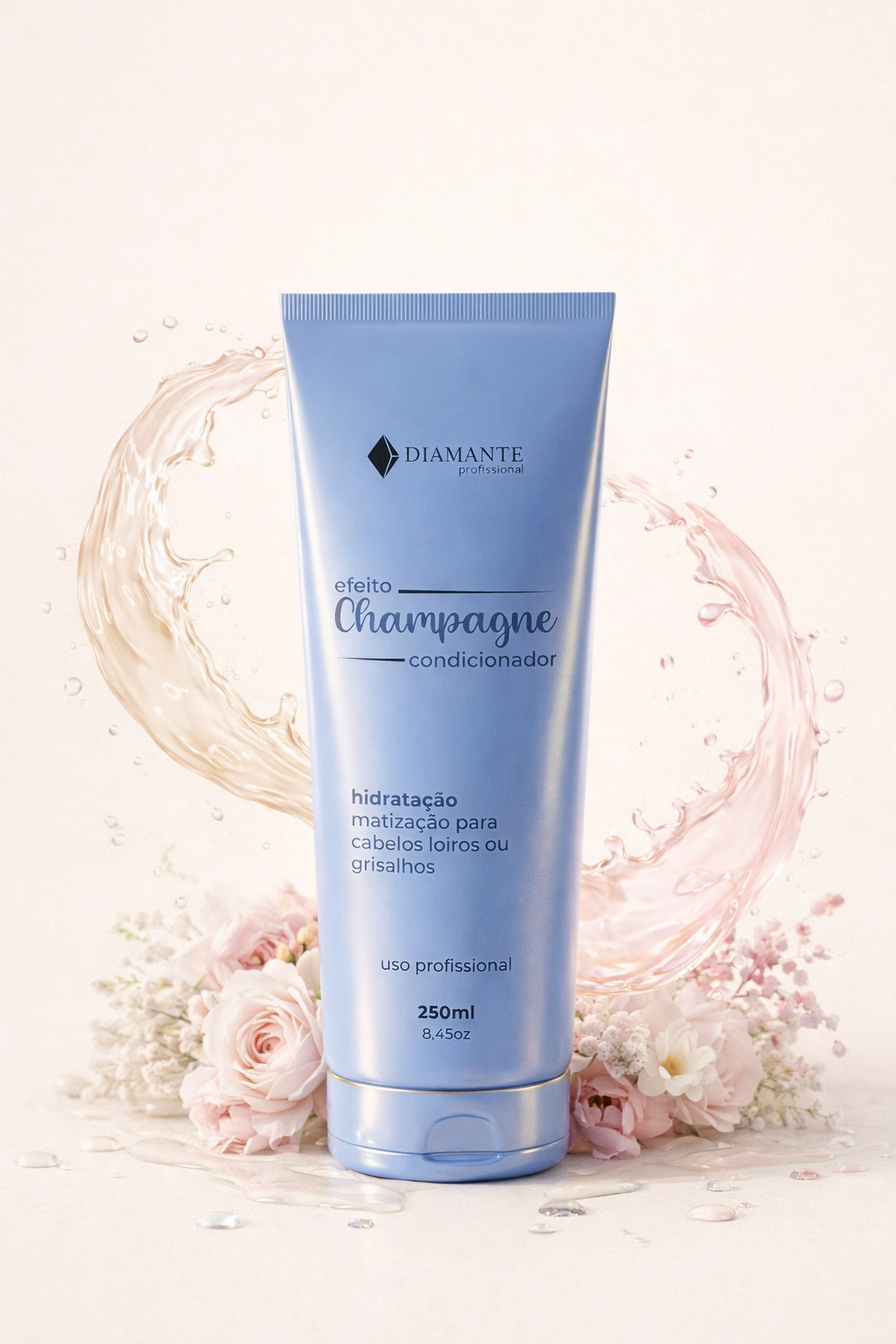 O Condicionador Efeito Champagne Diamante Profissional proporciona ma hidratação intensa ao cabelo alêm de matizar os fios, neutralizando os tons amarelados dos fios.