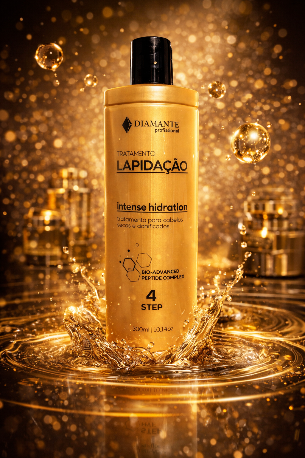 Intense Hydration Lapidação Step 4 é o quarto passo do tratamento e foi elaborada como uma máscara para tratamento dos cabelos secos e danificados, promovem uma hidratação profunda com muito brilho e maciez para os fios.