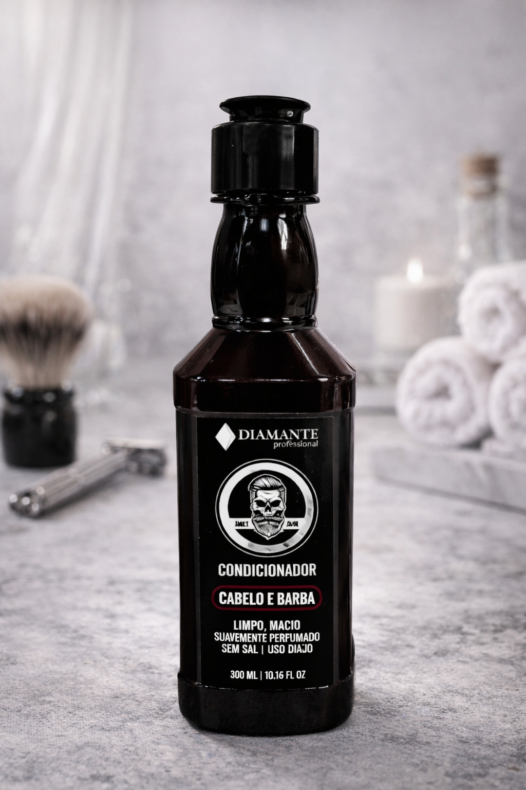 O CONDICIONADOR - LINHA BARBER da Diamante Profissional foi desenvolvido para limpar, amaciar e hidratar, além de alinhar e promover brilho aos fios do cabelo e da barba. O uso contínuo promove fortalecimento e nutrição, mantendo a saúde natural dos fios. Indicados para todos os tipos de cabelos e tamanhos de barba.
